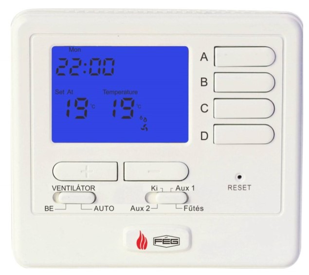 A készülék burkolatában elhelyezett, FÉG-725 programozható szoba-termosztát használta